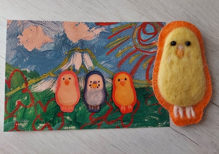 後ろはいずれも安全ピンが付いておりますので、カバンや洋服など柔らかいものに付けることが出来ます。