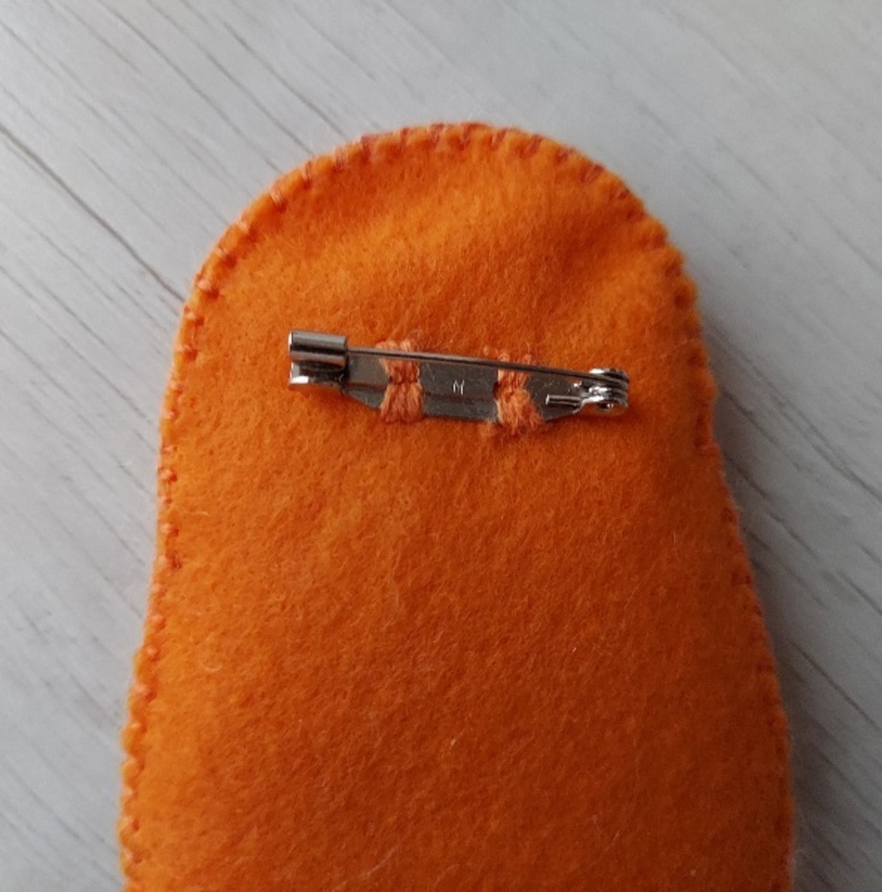 後ろに安全ピンがありますので、柔らかい所に付けられます。